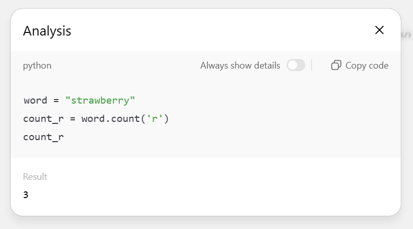 One benefit of executing code is that LLMs are excellent at authoring it. They’re even better at code than they are at natural language! More significantly, this is how AI products get past their shortcomings like spelling and arithmetic.